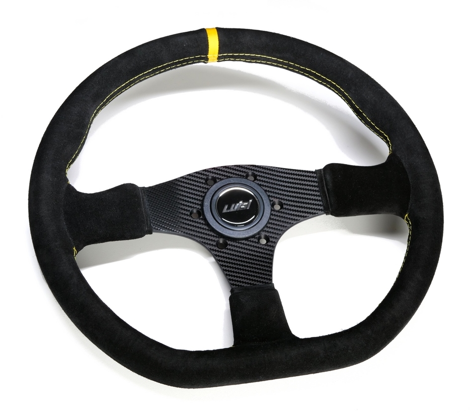 Luisi Stealth Corsa Sportlenkrad Wildleder schwarz mit Nähten & 12 Uhr Markierung in gelb - leicht geschüsselt & mit TÜV Prüfbericht- von uns hochwertig veredelt in Carbon Optik -Mit dem Luisi Stealth bekommst du ein leicht geschüsseltes Sportlenkrad mit einer traumhaften Motorsport Optik.